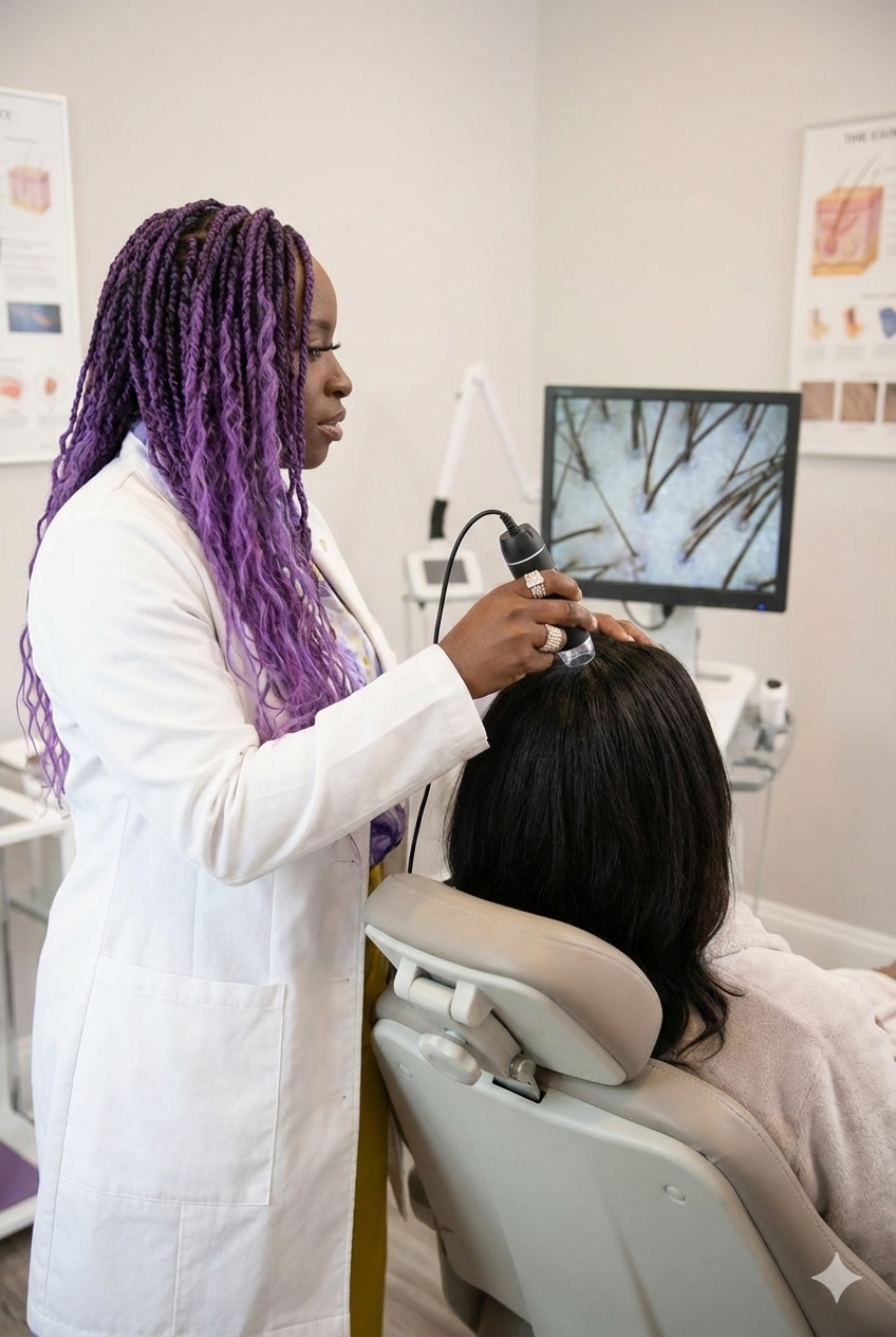 A non-invasive galvanic skin response scan that identifies environmental stressors, nutritional deficiencies, and energetic imbalances affecting your hair growth.